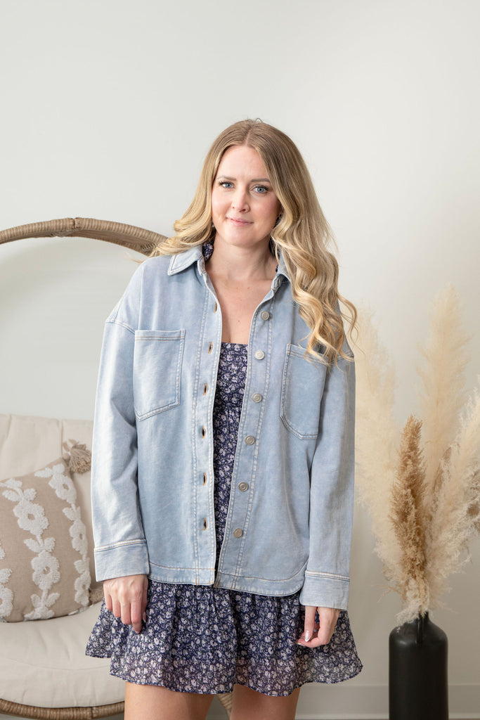 The Charli Denim Jacket is your new favorite layering piece—think cozy sweater vibes wrapped in classic denim. This oversized beauty drapes effortlessly over everything in your closet, delivering that relaxed, lived-in comfort you crave without sacrificing style. Perfect for throwing on over a tee or dress, it's the jacket that feels like a warm hug while keeping your look effortlessly cool.