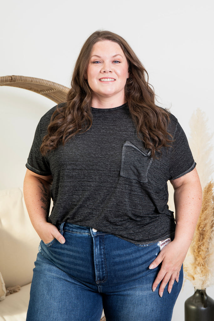 Effortlessly cool and undeniably comfy, this washed black tee is your new go-to for laid-back vibes. The soft, slouchy silhouette drapes just right—boxy enough to feel relaxed, fitted enough to actually flatter. Perfect for throwing on with your favorite jeans, layering under an open shirt, or making it the star of your casual lineup. Vintage-inspired wash adds character that only gets better with time.