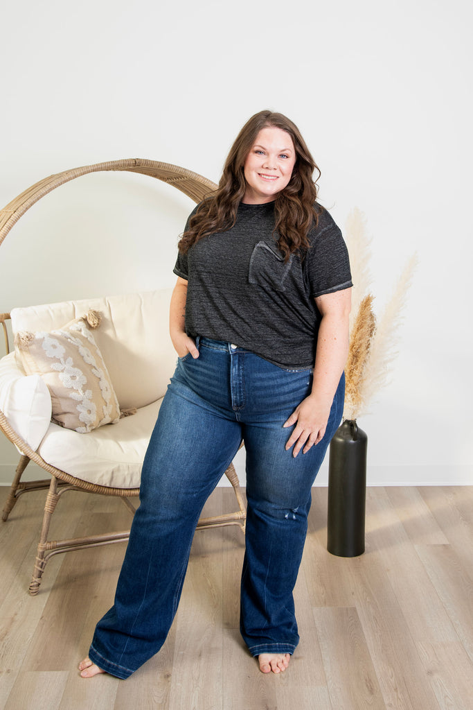 These Atlas Denim jeans by Risen are your new secret weapon! Featuring a sleek dark wash and timeless straight-leg silhouette, they're effortlessly versatile for any occasion. The built-in tummy control smooths and flatters your midsection, giving you that confident, polished look all day long. Because let's be honest—tummy control is everything, and these jeans deliver exactly what you need. Comfortable, chic, and totally you.