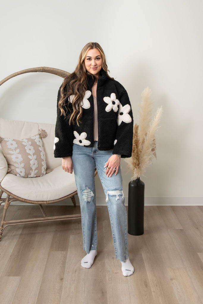 Snuggle up in pure comfort with the Cozy Blooms Sherpa Jacket—your new favorite go-to for those lazy days and outdoor adventures alike. This adorable jacket wraps you in incredibly soft sherpa that feels like being hugged by a cloud, making it the ultimate cozy companion. Perfect for layering or wearing solo, it's designed to keep you warm and comfy without sacrificing style. Find your perfect match in white or choose from our other delightful color options. Once you slip it on, you won't want to take it off!
