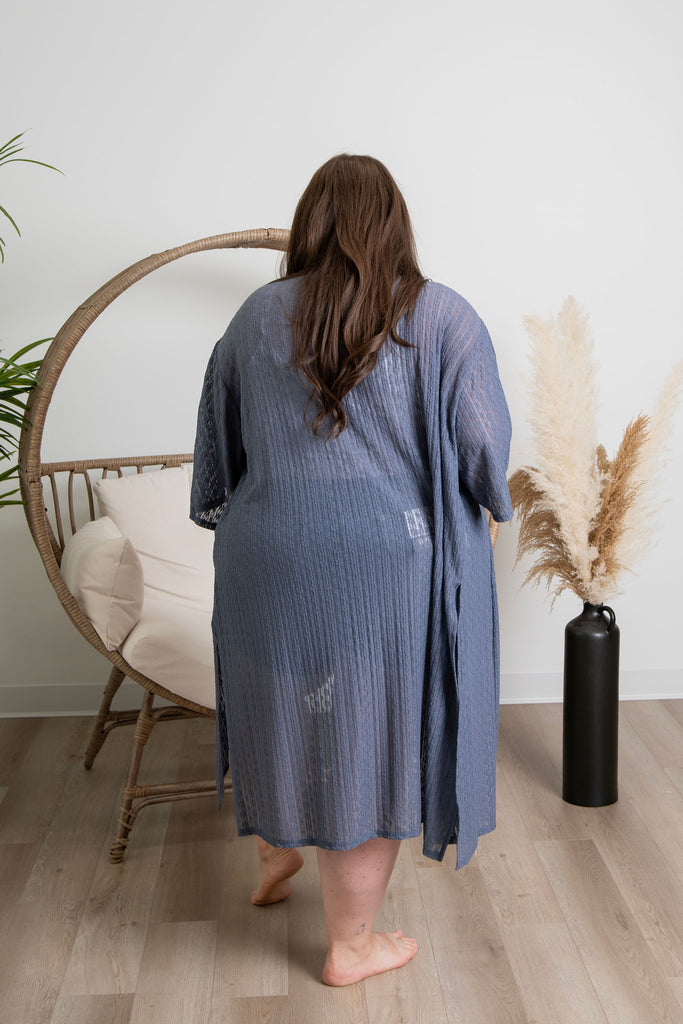 The Picturesque Moments Kimono delights with its light weight, dusty navy shade and subtle floral texture. Its long, flowing silhouette adds a playful elegance, perfect for layering and bringing a fresh, whimsical vibe to any outfit.