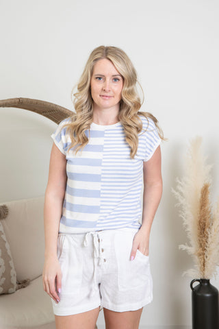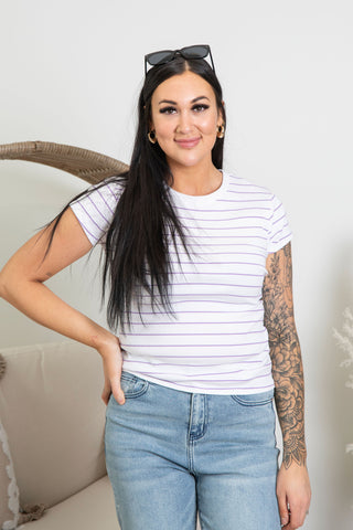 ~ Brunette ~ Basic Ribbed Tee - Lavender Stripe