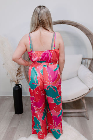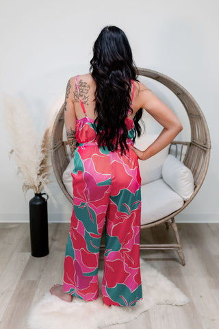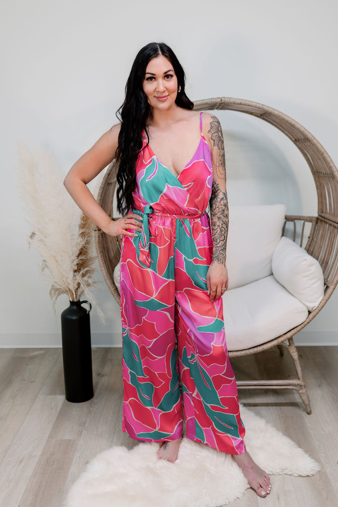 This chic Noelle jumpsuit will be your favourite summer go to! pair with any shoe, you'll have all eyes on you wherever you go! Features an adjustable strap and adjustable waist tie.