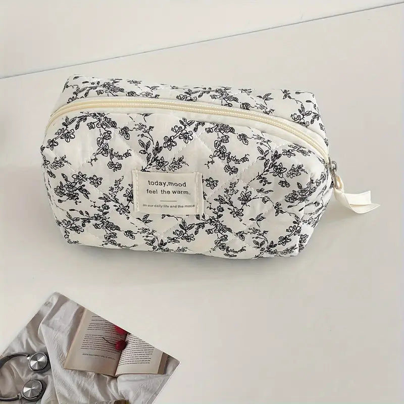 Organize your beauty essentials in style with this adorable four-piece vanity set. Each bag features a gorgeous white base adorned with delicate black florals, perfect for storing makeup, toiletries, and travel necessities. Mix and match the different sizes to create your ideal beauty routine setup. Whether you're getting ready at home or packing for a getaway, these sweet coordinating bags keep everything accessible and Instagram-worthy. A stunning addition to any bathroom or vanity!